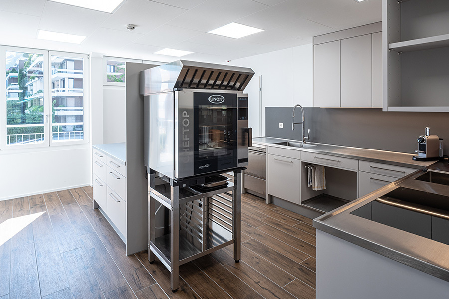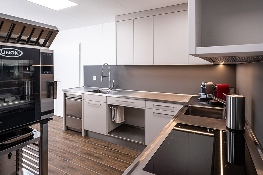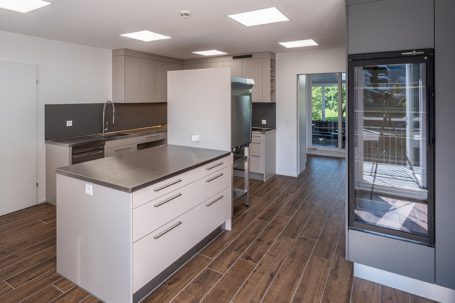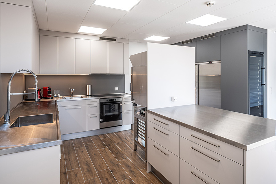 Das Clublokal wurde mit einer modernen Gastroküche ausgestattet, die Funktionalität und das Design sind stilvoll kombiniert. Ein besonderer Hingucker ist die Edelstahlabdeckung.