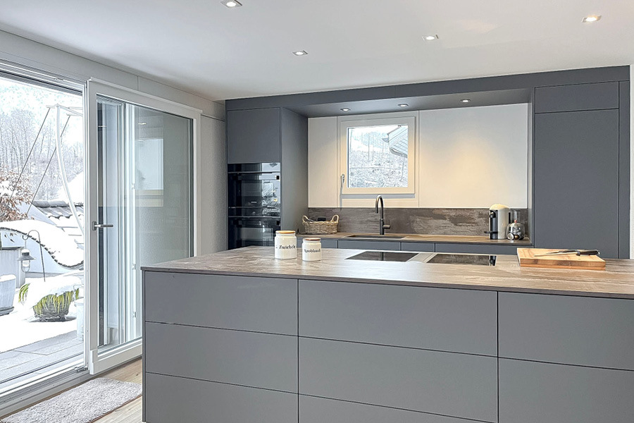 Sämtliche zweiflügeligen Balkontüren wurden durch einflügelige Schiebefenster ersetzt. Dies schafft mehr Platz im Wohnraum und bietet maximale Flexibilität im Alltag.